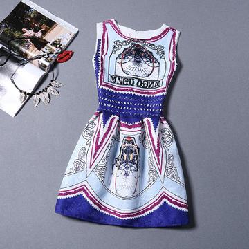 櫻妃閣服飾2016春夏提花印花連衣裙無袖蓬蓬裙A字裙 /