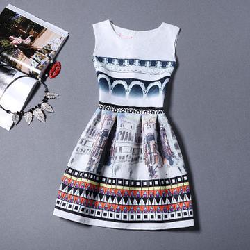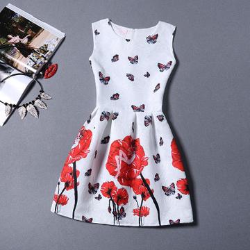 櫻妃閣服飾2016春夏文藝印花小清新無袖蓬蓬裙A字裙 /
