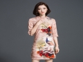 改良旗袍裙春裝新款女裝2016復古七分袖修身印花連衣裙 /