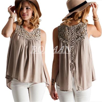 爆款性感無袖圓領(lǐng)寬松T恤衫歐美風(fēng)蕾絲拼接休閑上衣BN0341 /