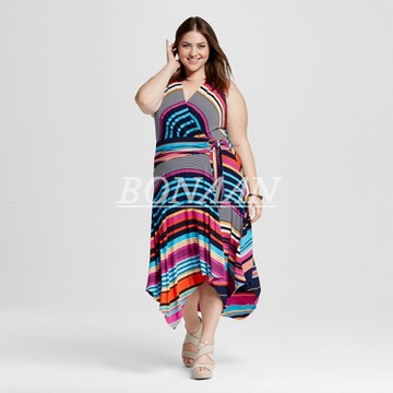 2016新款V領(lǐng)無袖不規(guī)則下擺加大碼連衣裙歐美胖美眉長裙BN0342 /