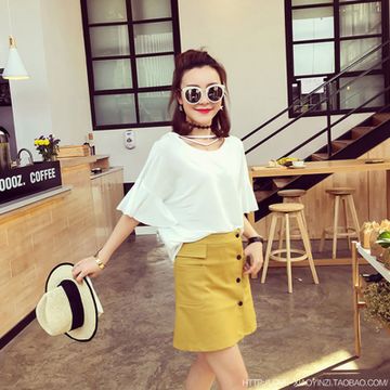 2016夏裝新款韓版 時(shí)尚單排扣A字裙半身裙 女裝 短裙 /