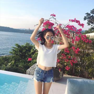 2016夏季新款韓版超顯瘦華夫格針織短袖T恤女裝短款針織衫 T恤 /