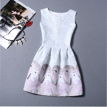 【實拍】2016春夏提花印花連衣裙無袖氣質(zhì)蓬蓬 /