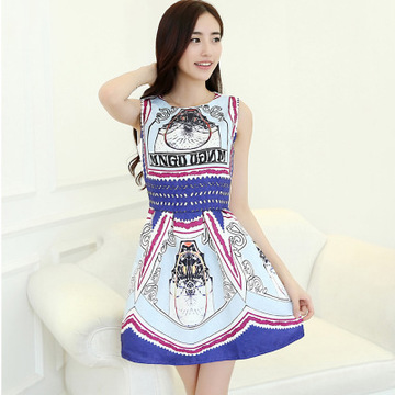 【實拍】2016春夏 提花印花連衣裙無袖氣質(zhì)蓬蓬 /