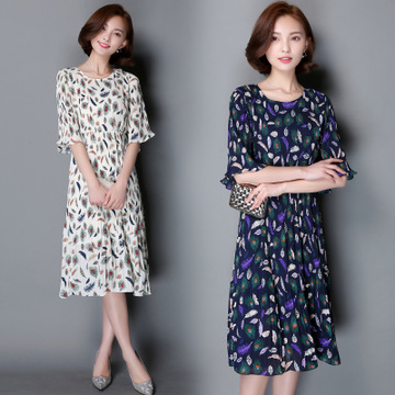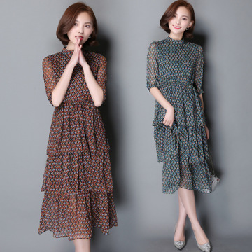 實拍2016年夏季顯瘦雪紡女裝碎花大擺連衣裙 /