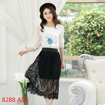 供應(yīng)2016新款韓版女裝鏤空透視水溶睫毛蕾絲半身裙百搭網(wǎng)紗長裙潮 /