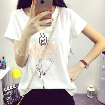新款韓版百搭人物拼接短袖女打底T恤潮 /