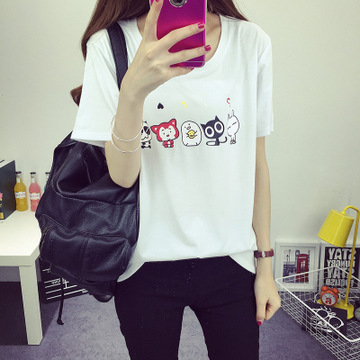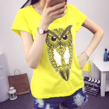 2016夏季新款休閑圓領(lǐng)寬松韓版純棉短袖貓頭鷹t恤 /