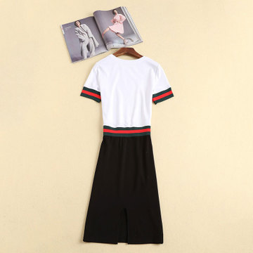 女裝2016春季個(gè)性徽章螺紋撞色拼接時(shí)尚休閑假兩件連衣裙 /