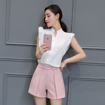 2016新款夏裝名大碼媛女裝兩件套裝甜美小清新短袖上衣闊腿短褲 /