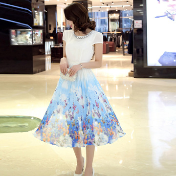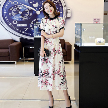 2016夏連衣裙中長(zhǎng)款 大碼氣質(zhì)修身水墨印花簡(jiǎn)約短袖連衣裙 /