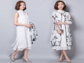 實拍中國風(fēng)旗袍寬松腰水墨印花七分袖兩件套連衣裙2016夏新款 /