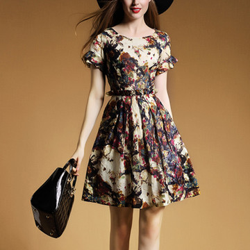 2016夏季新款女裝通勤圓領(lǐng)荷葉袖連衣裙夏短袖a字裙 /