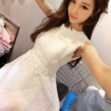 2016夏新仙女超美花邊氣質(zhì)無袖女神顯瘦修身收腰無袖連衣裙 /