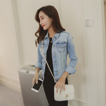 實(shí)拍2016年春季新款彈力修身淺藍(lán)牛仔外套 /