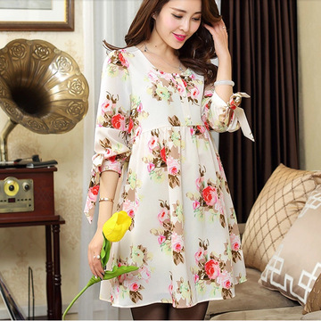 新款春夏季 蝴蝶結(jié)孕婦寬松印花孕婦裝娃娃連衣裙 /
