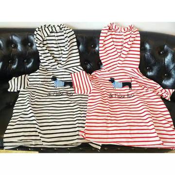 廠家直銷夏新韓版學院風條紋竹節(jié)棉卡通植絨臘腸狗連帽短袖女T恤 /