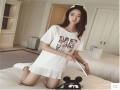 夏季新款韓版女裝打底衫寬松短袖百搭百褶印花女式連衣裙 /