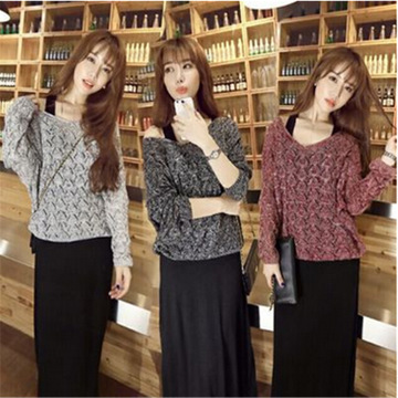 2016新款夏季女裝長(zhǎng)袖鏤空針織衫韓版修身顯瘦女式連衣裙兩件套 /