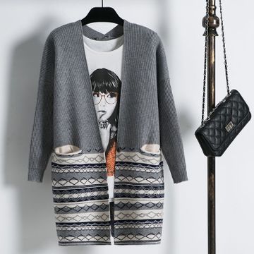春裝新款韓版寬松東大門針織衫女開衫時尚大口袋毛衣女外套批發(fā) /