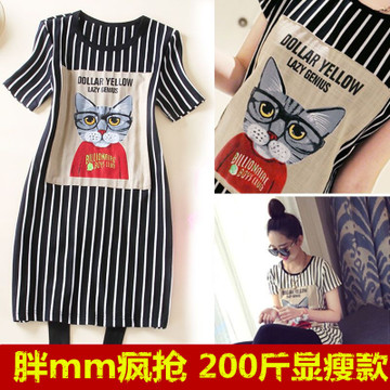 大碼女裝夏裝 胖mm顯瘦中長款打底衫 加肥加大短袖T恤 /