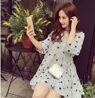 2016春韓版學(xué)院風(fēng)星星連衣裙小清新學(xué)生寬松七分袖連衣裙夏女潮 /