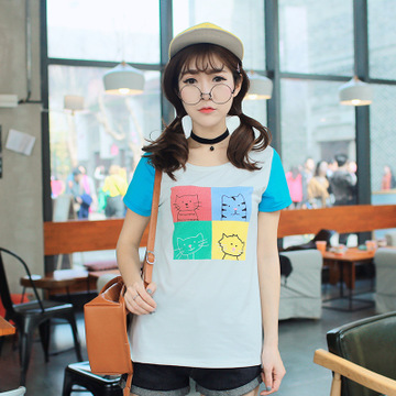 實(shí)拍韓版短袖t恤女寬松上衣創(chuàng)意簡約學(xué)生修身百搭夏裝顯瘦潮 /