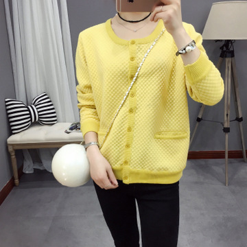 2016春秋新款短款長袖外套女常規(guī)款圓領(lǐng)純色開衫上衣 /