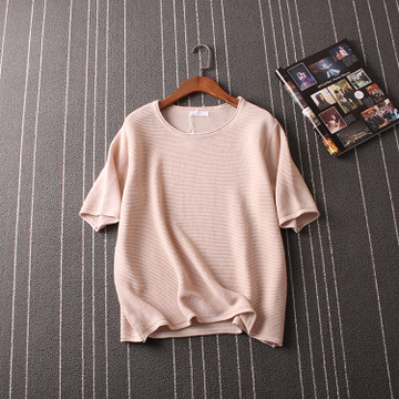 舒適心水~韓國單 2016韓版百搭冰絲麻寬松顯瘦套頭短袖針織衫女款 /