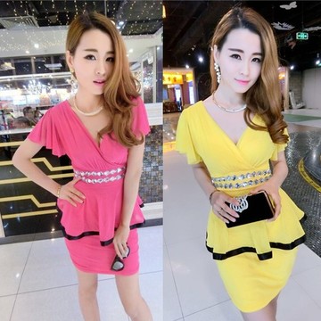 實(shí)拍深v新款夜店女裝性感連衣裙遮肚修身包臀連衣裙低胸短裙 /