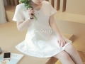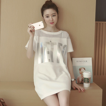 孕婦款網(wǎng)格印花字母韓版孕婦連衣裙白色一件代發(fā) /