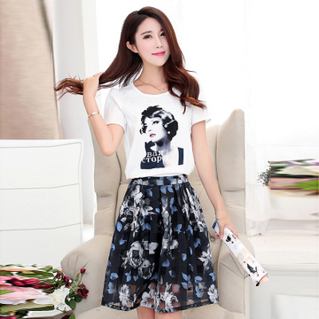 2016春夏新款女式裙套裝優(yōu)雅簡(jiǎn)約百搭雪紡衫 /