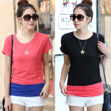 2016夏季新款 韓版時尚百搭大碼圓領(lǐng)撞色上衣 莫代爾短袖T恤女式 /