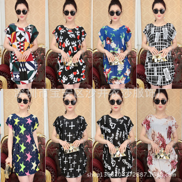 歐美女裝 夏季寬松連衣裙胖mm短袖連衣裙打底衫工廠直銷 /