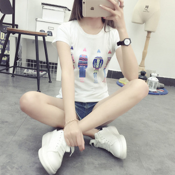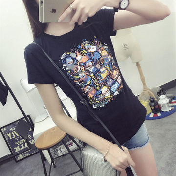 2016春夏圓領(lǐng)套頭印花白色黑色青年學(xué)生女T恤短袖一件代發(fā)批發(fā) /