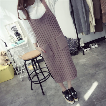 2016春季毛衣外套上衣春季女裝新款中長(zhǎng)款無(wú)袖背帶連衣裙針織衫 /