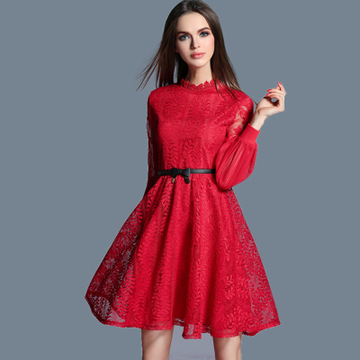 實(shí)拍 歐美時(shí)尚新款 優(yōu)雅氣質(zhì)修身長(zhǎng)袖連衣裙 送腰帶 /