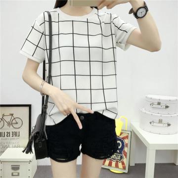 夏季6款新款寬松T恤韓版印花 顯瘦寬松打底衫女士羅紋圓領(lǐng)T /