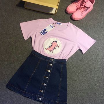 獨(dú)立包裝 韓國潮牌SJ*P 人氣款卡通刺繡恐龍 圓領(lǐng)休閑短袖T恤女 /