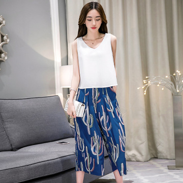 【實拍】2016夏新款韓版女裝V領(lǐng)短袖寬松闊腿褲兩件套套裝 /