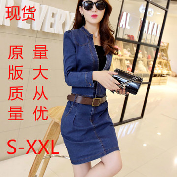 春季女2016新款長袖歐美修身顯瘦氣質(zhì)包臀牛仔連衣裙女裙 帶抹胸 /
