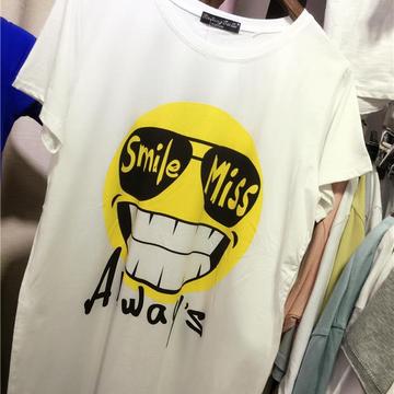 2016韓國東大門夏季新款時尚可愛笑臉字母中長圓領(lǐng)短袖T恤連衣裙 /