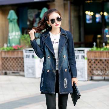 2016春季新款歐洲站時尚中長款牛仔外套女 春秋款大碼寬松上衣潮 /