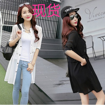 韓版夏季中長款薄防曬衣女外套夏季雪紡開衫棒球服610# /