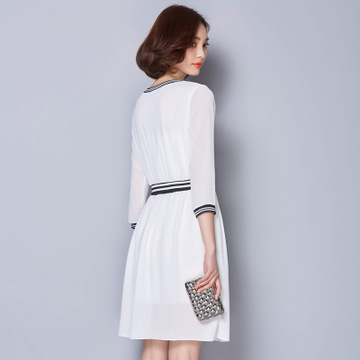 實(shí)拍2016新款夏裝韓版雪紡連衣裙大碼女裝圓領(lǐng)修身顯瘦短裙 /