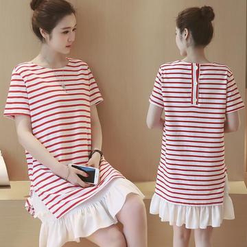 2016夏 韓版圓領(lǐng)孕婦哺乳荷葉邊假兩件寬松孕婦連衣裙 可喂奶 /