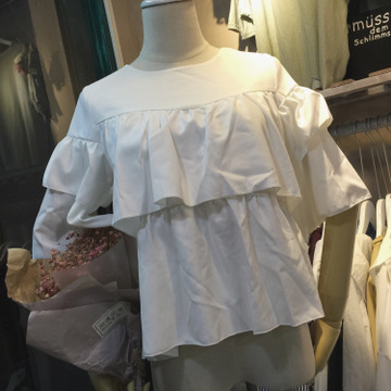 實(shí)拍 韓國(guó)東大門(mén) 夏季好搭氣質(zhì)多層荷葉邊娃娃衫女 /