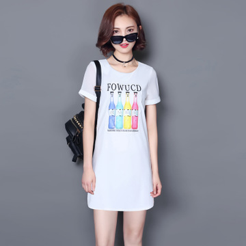 2016夏新款韓版修身貼布印花套頭中長(zhǎng)款短袖T恤8867# /