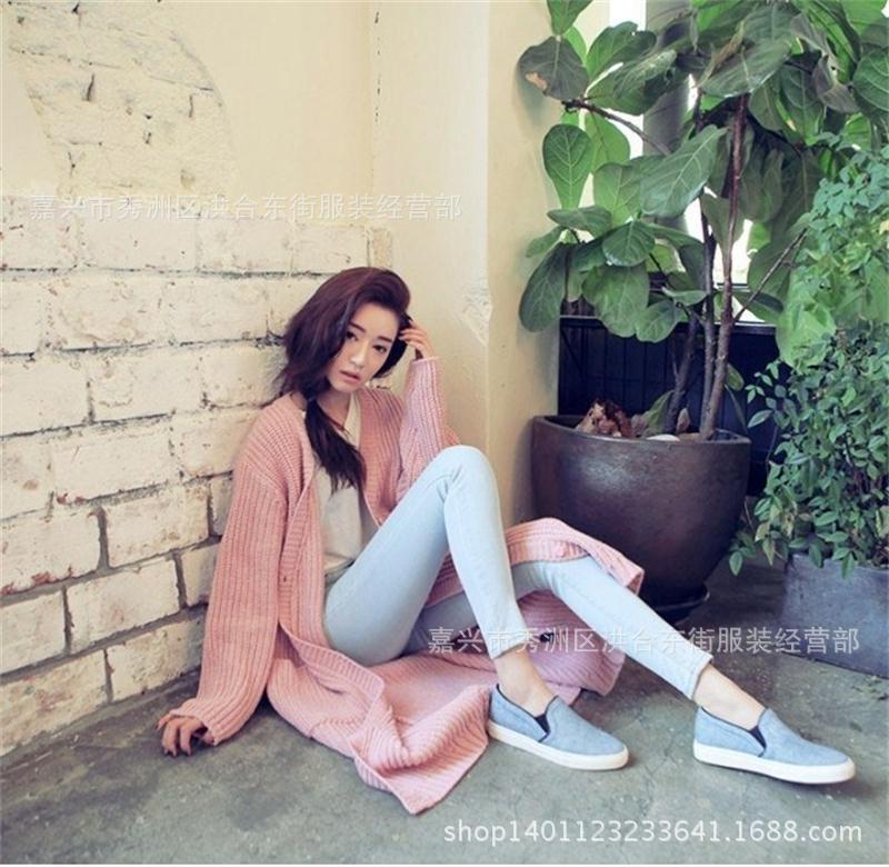 2015秋冬裝新款韓版女裝長版口袋百搭寬松毛衣外套針織開衫女批發(fā) /